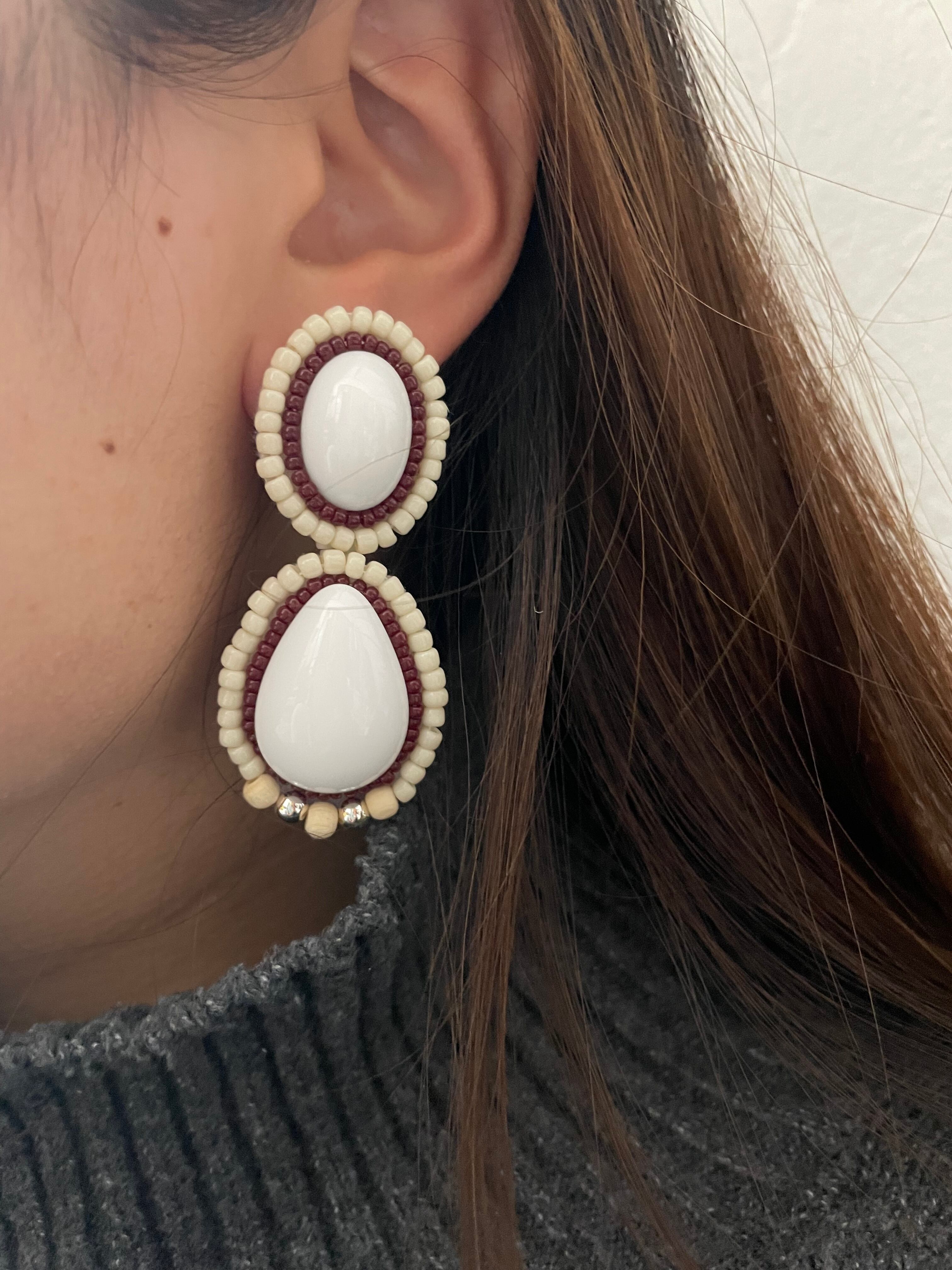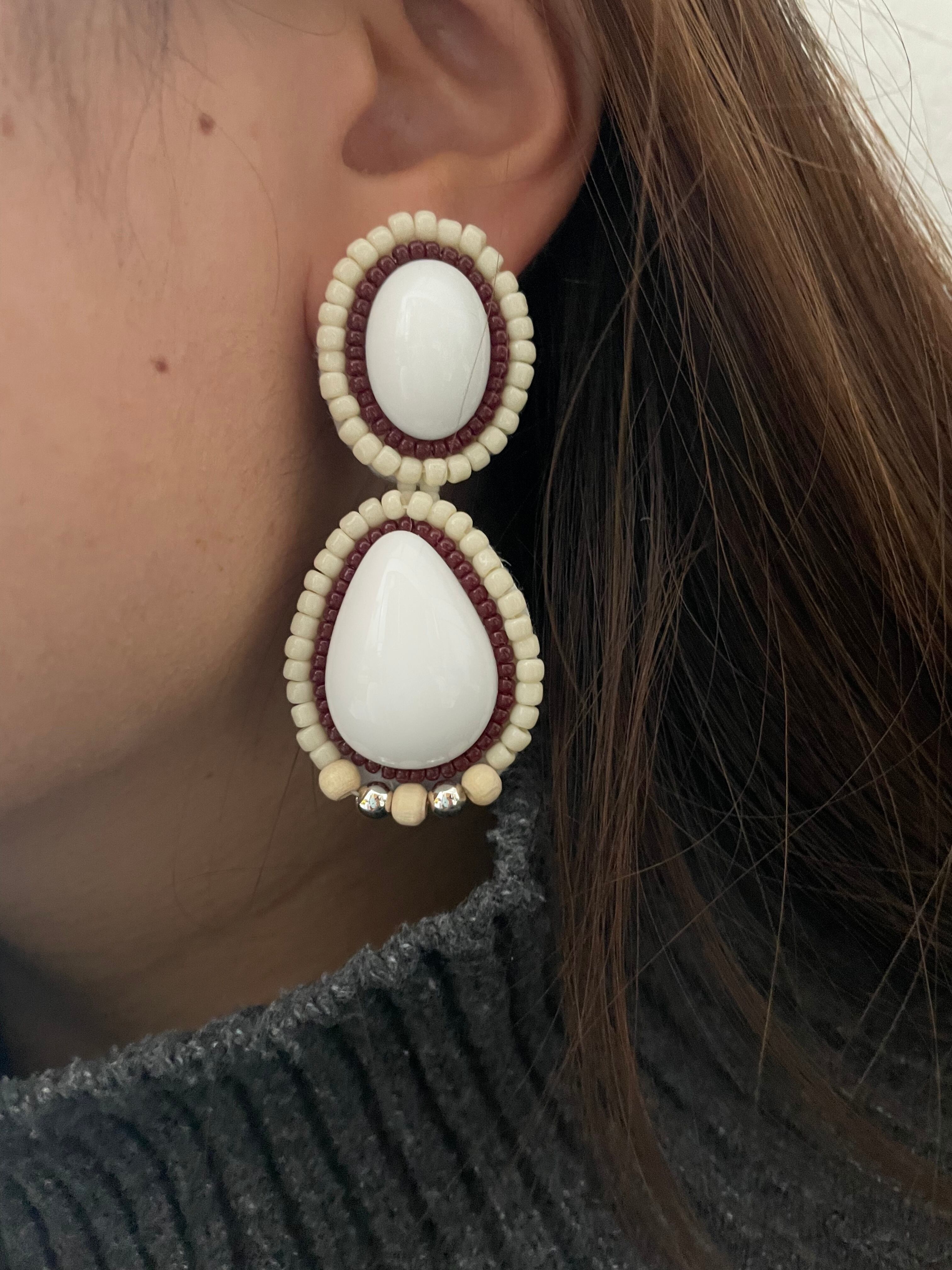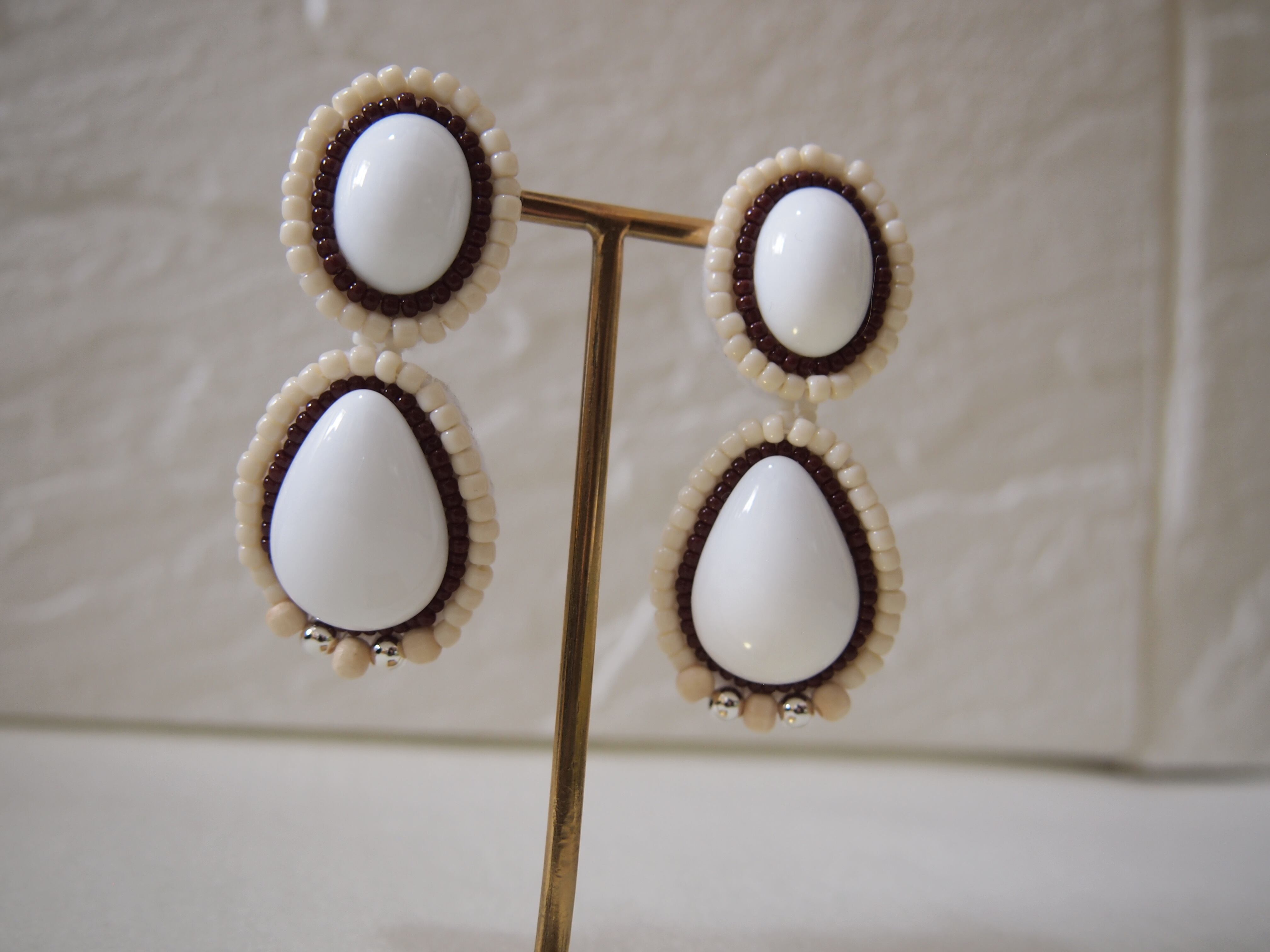 落ち着きのある色合いでお作りしているので、大人っぽくお顔周りで映えるアクセサリーです。