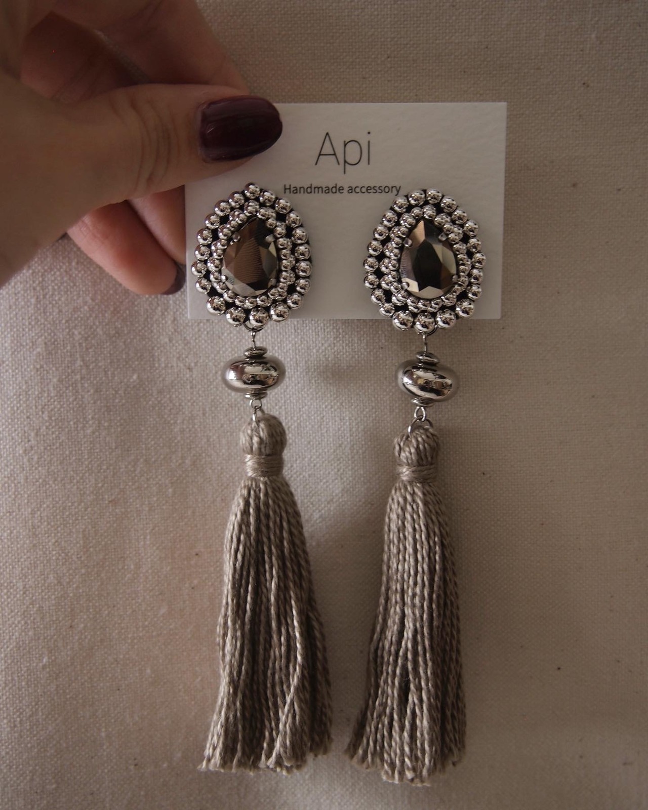 トップがキラキラな分下のタッセルを控えめカラーにしました。