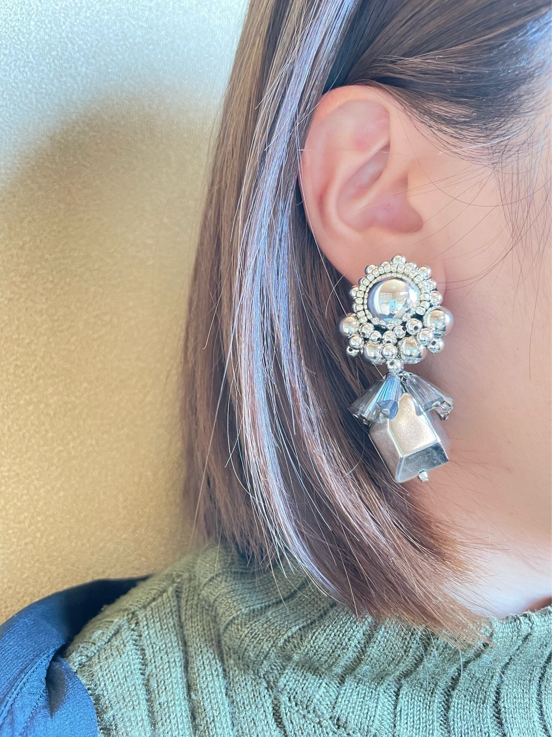 クールな印象のアクセサリーですが、周りのコーンビーズがフリルのようで可愛らしさもあります